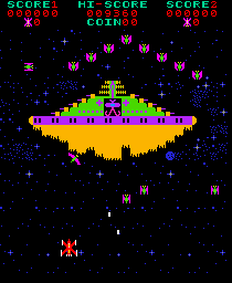 The sound onthis game is rather good for its time. It has an intro song and the chirpingsounds as you blast the giant birds are rather cool. The blaring sirens as youattack the mothership area also quite pleasing.