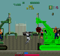 Robocop (1988 Ocean, licensee Data East) Jamma. Based onthe movie character. Death-themed side scroller. Speech : "Drop it !", "Dead or Alive, you're coming with me !"