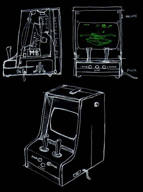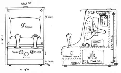 The Vector-X will feature a rotatable 9"Vector screen and a modular control design which will allow custom controlsystems such as Battlezone's twin joysticks or Lunar Lander's analogue Thrustlever to be easily slotted into the machine.